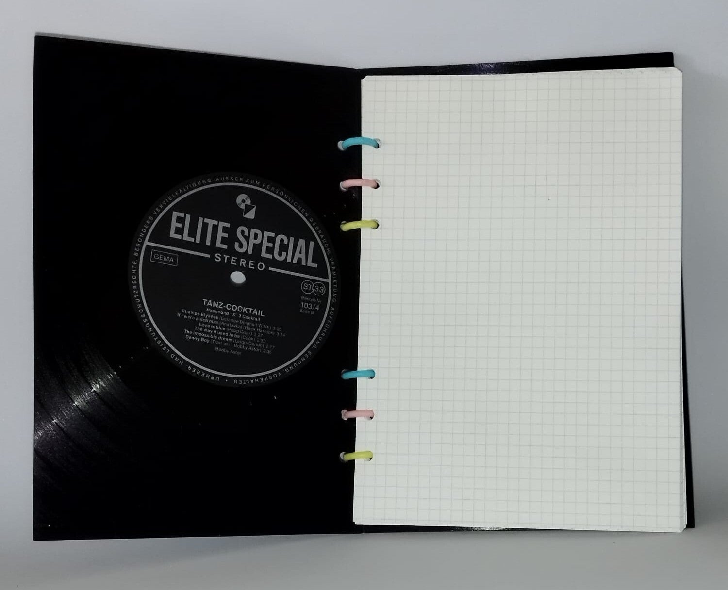 Jede große Idee beginnt mit einer ersten Notiz. Warum sie nicht dort festhalten, wo schon immer Geschichte geschrieben wurde? Unsere Notizbücher verfügen über ein Cover aus originalen Upcycling-Schallplatten.